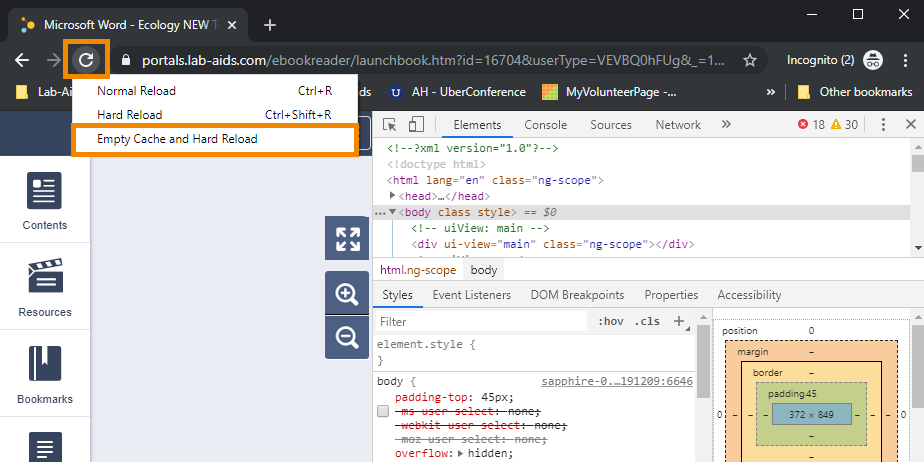 - After pressing F12, right click on the "refresh" circular arrow wheel next to the URL bar and click "Empty Cache and Hard Reload".